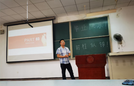 会上,辅导员崔瑾进行了毕业生安全教育,重点围绕生命安全、财产安全、网络安全等进行了强调。辅导员方周然围绕党团组织关系转接进行了讲解。陶书记对毕业派遣进行了重点讲解,梳理了毕业离校前的重要事项,希望广大毕业生增强爱校荣校意识,从心态上完成从毕业生到员工、从员工到社会公民的角色转变,从行动上要自信自强、敢于竞争、不惧困难。