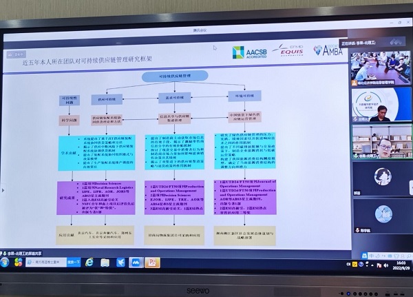 2022年9月29日下午,北京理工大学李果教授应学院邀请,作了题为“平台经济下的供应链竞合与信息分享策略”的学术报告。报告会采用线上形式,通过腾讯会议直播,校内师生分别通过线下集中和线上的形式参加。