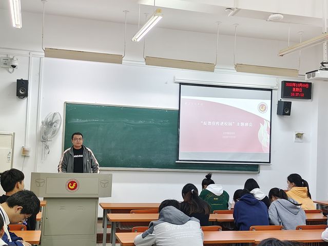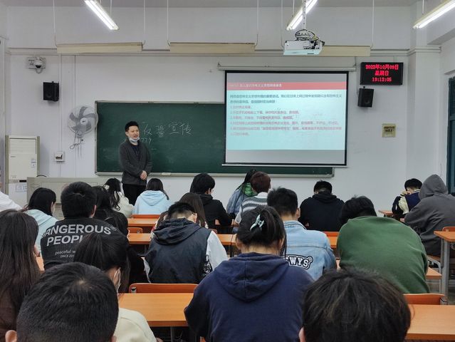 本网讯(通讯员:张升锋)为进一步加强师生面对突发恐怖事件的防范意识,提高面对恐怖事件的合理处理、自护自救及有效逃生避险的能力,2022年10月9日晚,太阳成集团tyc33455cc16个班级在各班班主任的带领下,利用晚点名时间开展“反恐宣传进校园”主题班会活动。
