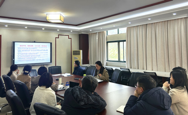 会议伊始,全体人员共同观看了习近平总书记11月考察湖北时的新闻联播报道。随后,孙静月围绕“鼓足干劲、奋发进取,久久为功、善作善成”主题展开领学,传达习近平总书记考察湖北重要讲话精神。