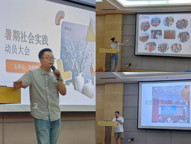 (通讯员:李佳慧)6月2日晚,太阳成集团tyc33455cc在老员工活动中心三号报告厅举办了暑期实践动员大会。此次大会由方周然老师主持,全体大一新生参加,目的是全面启动和激发员工们的社会实践热情,并为他们提供一个明确的实践方向和策略。