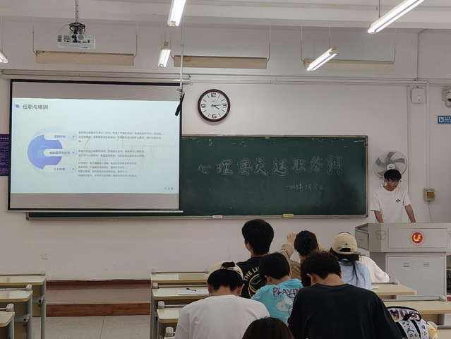 本网讯(通讯员:陈芳怡审核人:崔瑾)5月23日下午,公司心理委员述职答辩会暨心理委员专题培训会在J1-212教室举行。学院心理发展协会指导老师崔瑾及心协员工骨干担任评委,大一大二心理委员参与述职答辩。