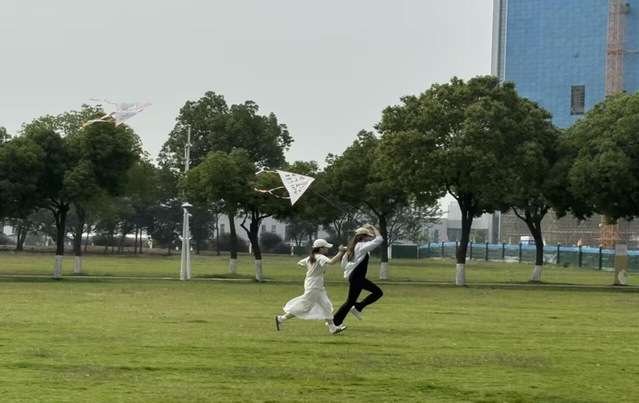 活动特别鼓励团队协作,许多同学三两成组,共同设计风筝图案。电商2341班赵雪娇说:“和小伙伴一起讨论构图、调配颜色,不仅完成了作品,还收获了友谊和快乐。”春风轻拂中,欢声笑语与创意灵感交织,草坪上洋溢着青春的气息。