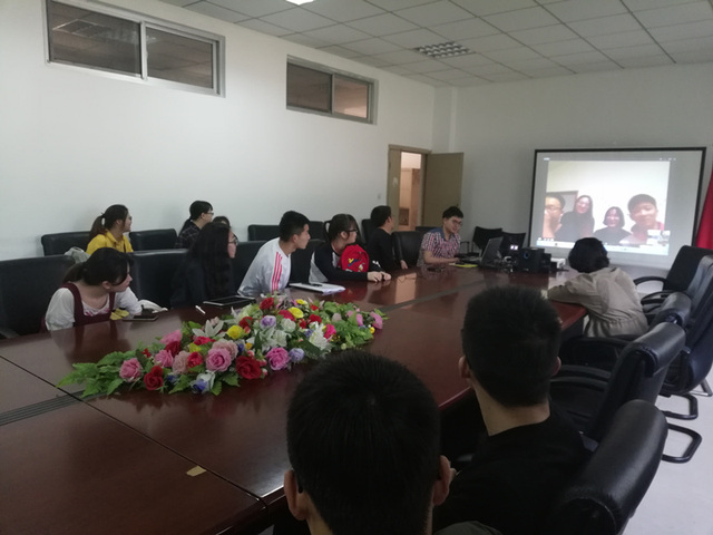 北京时间2018年4月3日上午10点,美国蒙哥马利4月2日晚上9点,公司15级信合专业员工与14级AUM职工举行视频交流会,书记俞红、副经理刘行军老师参加,王东红老师主持。