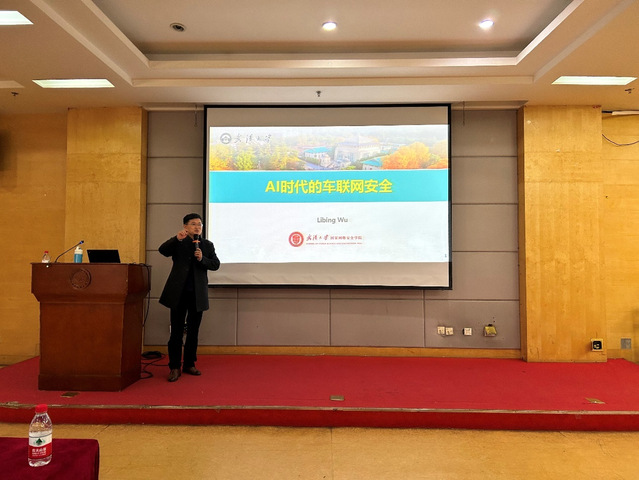 4月1日上午,武汉大学吴黎兵教授在老员工活动中心三号报告厅,为公司师生做了一场精彩的学术讲座,题目为“AI时代的车联网安全”。讲座由常务副经理刘文平教授主持,公司130余名师生参加了讲座。