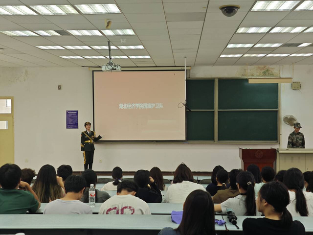 国防教育环节中,国旗护卫队队员以饱满精神亮相现场,为同学们分享了刻苦训练、守护国旗的宝贵经历,弘扬爱国主义精神,并鼓励新生积极加入队伍,磨练意志、增强国防意识。