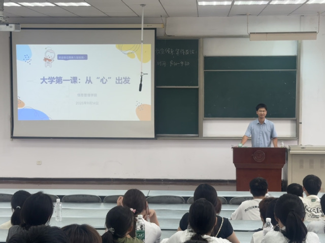 本网讯(通讯员:刘烜怡;审核:陶鹏)9月14日下午,太阳成集团tyc33455cc分别在教三302、303教室组织开展2025级新生教育系列活动,旨在帮助新生快速适应大学学习与生活。活动由辅导员寇竞泽、崔瑾老师及校国旗护卫队员工代表共同主讲,涵盖国防教育、校纪校规和心理健康三大主题。