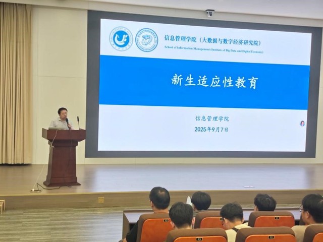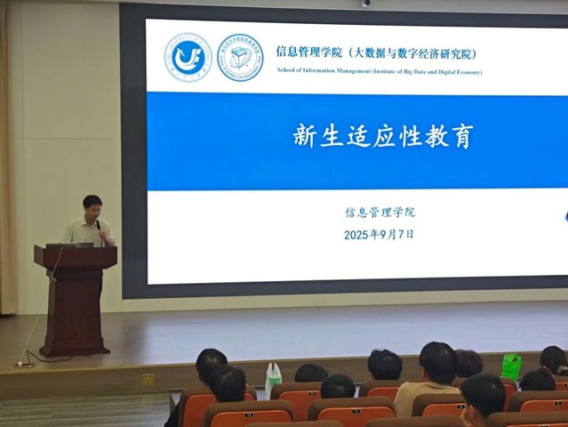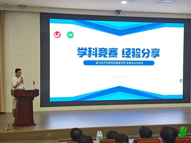 优秀员工代表邓乾、郭昊、王浩扬分别作了经验分享。电商2241班的邓乾同学分享了从事科研创新的经历,建议新生尽早找到自己的兴趣点,充分利用学校资源,培养良好的学习习惯,关注学科竞赛信息,积极参与科研实践,为未来就业或升学提前做好准备。电商2342班的郭昊同学以“学科竞赛进阶路径”为主题开展分享,这位手握8项国家级奖项、6项省级奖项的“竞赛达人”,同时担任数智创业实验室行政助理及两家公司的CEO,用实战经历为新生拆解备赛关键。数管2341班的王浩扬同学以“大学进阶之路:从‘0’到‘1’的成长与收获”为主题,结合自身经历,从学习、竞赛、科研、实践四大维度,为新生提供可落地的大学规划方案。