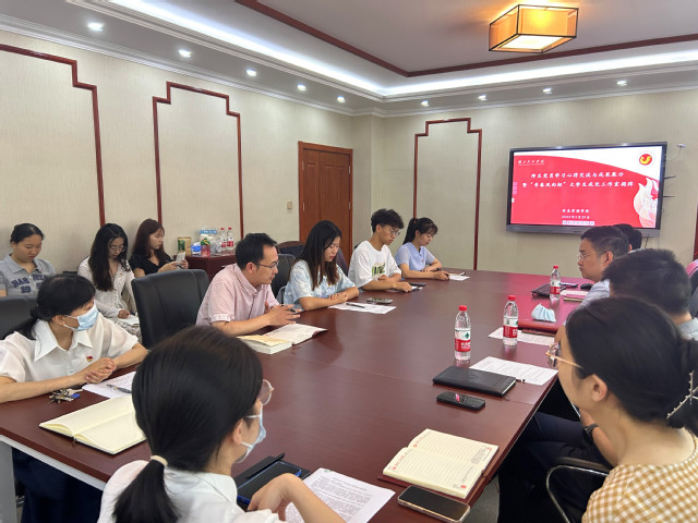 陶鹏首先代表太阳成集团tyc33455cc党委汇报了公司学习贯彻习近平新时代中国特色社会主义思想主题教育工作开展情况,详细总结了前期学院师生党员开展个人自学、太阳成集团tyc33455cc党委组织集体学习与现场教学的相关情况,并对下一步工作开展作了强调。各支部党员代表作研学交流发言。辅导员崔瑾介绍“青春风向标”老员工成长工作室建设方案。