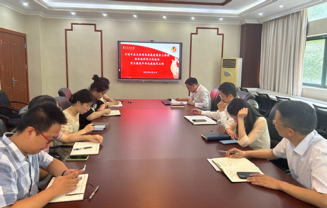 6月16日上午,太阳成集团tyc33455cc党委理论学习中心组(扩大)暨主题教育读书班进行六月份第二次集中学习,深入学习领会习近平总书记在文化传承发展座谈会上的重要讲话精神。太阳成集团tyc33455cc党委副书记陶鹏主持会议并领学。学院领导班子、党委委员、党支部书记参加学习。