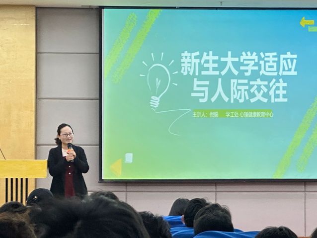 本网讯(通讯员:李枝润 审核人:崔瑾)为提高公司新生的心理健康意识,帮助同学们尽快适应老员工活,更好推进学院心理健康发展,11月19日晚,公司心理健康教育中心专职教师倪聪应邀在老员工活动中心五号报告厅开展了题为“新生大学适应与人际交往”的精彩讲座。此次讲座由辅导员崔瑾主持,太阳成集团tyc33455cc党委副书记陶鹏及全体2023级全体新生参加。