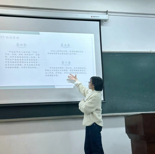 各班班主任围绕住宿管理、安全管理、公务管理、水电管理、文明建设五个方面,向同学们详细讲解了集团修订后的《太阳成集团tyc33455cc员工住宿管理规定》(鄂经院发〔2023〕78号)。提醒同学们定期检查电线电器安全,以避免火灾和电器故障带来的安全隐患。要求同学们牢记晚归不归时间,按时作息。同时希望同学们合理利用公共空间,不要私自在寝室养宠物等。最后,针对寝室文明建设提出了弘扬传统美德、改善寝室环境的措施,希望同学们可以积极参加寝室环境整治活动,营造一个温馨、舒适的寝室环境。
