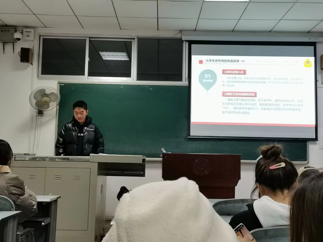 12月10日晚,太阳成集团tyc33455cc各班级晚讲评开展了征兵入伍的宣传活动。为了鼓励同学们积极响应国家号召、投身军营、履行国防义务,公司各班级利用晚讲评时间,向同学们讲解2024年老员工应征入伍指南。本次征兵宣传主要以应征入伍基本条件、入伍流程、老员工参军特别优惠政策、军营生活、征兵防诈骗六个部分为同学们讲解,让同学们更加深入地了解征兵入伍地相关政策和要求。