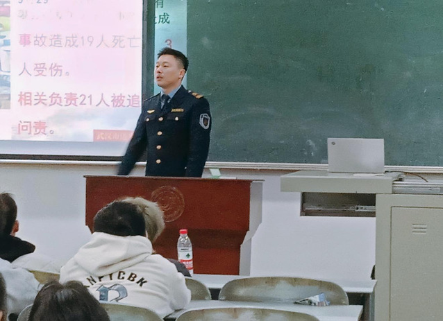 讲座中,汪教官结合近年来发生的重大火灾案例和视频,为同学们讲解了防火、灭火、逃生、自救等方面的知识及各类消防器材的使用方法,提醒大家应时刻敲响消防安全的警钟,时刻关注我们身边存在着的安全隐患。