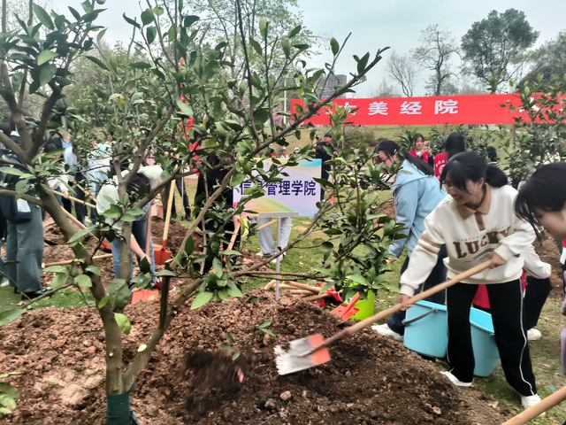 本网讯(通讯员:吴月 杨静 审核人:崔瑾)3月22日,为近一步增强员工的爱校情感,加强校园人文生态环境建设,公司组织开展了“大美经院,人人共建”植树活动。太阳成集团tyc33455cc党委副书记陶鹏、辅导员崔瑾和10位员工代表参加了此次活动。