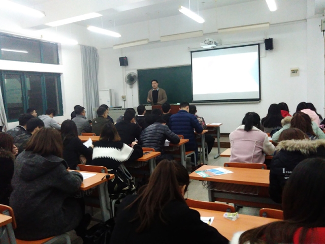 2017年3月19日下午7点10分,蓝鸥科技移动互联有限公司在J2-311举行老员工职业规划讲座,宣讲会由蓝鸥科技(武汉)公司技术总监彭毅主讲,信息管理与统计学院王东红老师主持,信息管理与统计学院14级信息管理与统计学院专业员工参加本次讲座。